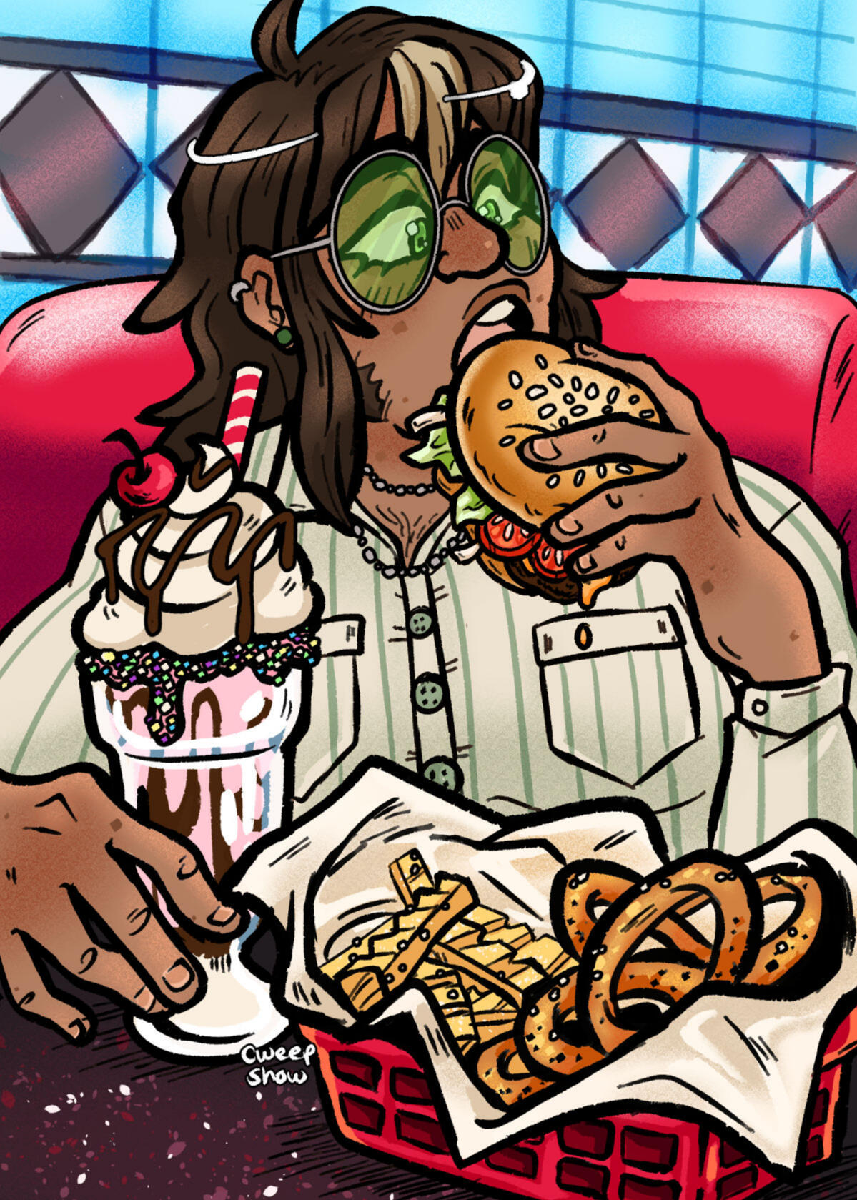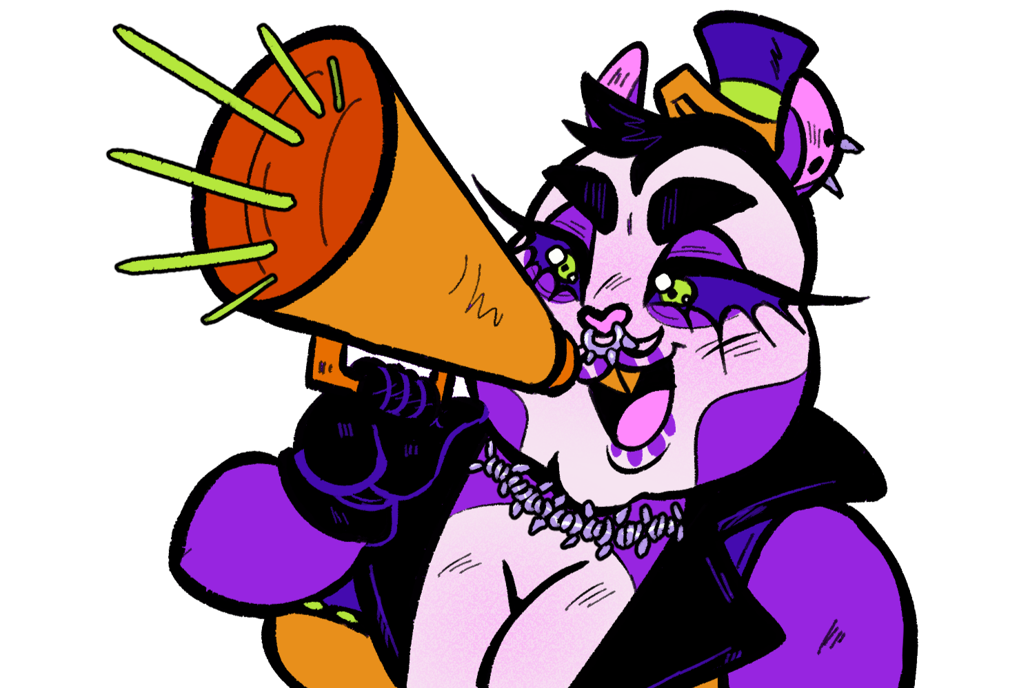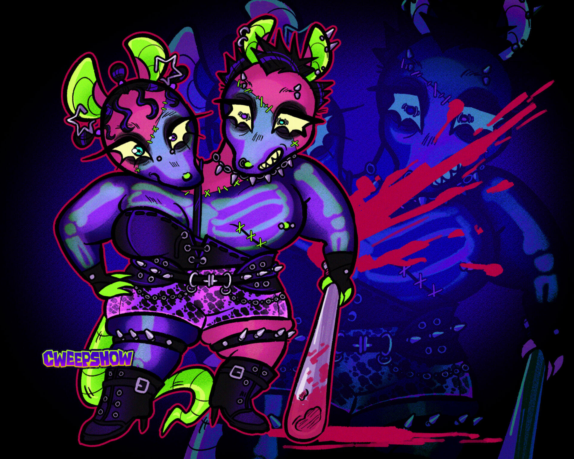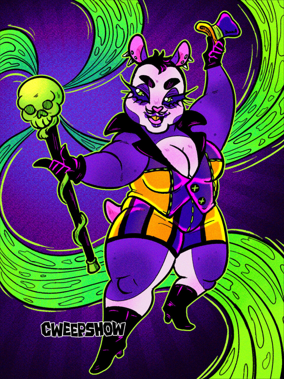 I'm a freelance illustrator and character designer.I specialize in bold line work, vibrant colors, expressive characters, and body diversity. My work thrives in the realm of the weird and whimsical.